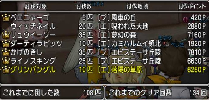 討伐対象の敵、数、地域、もらえるポイントが示されてます。