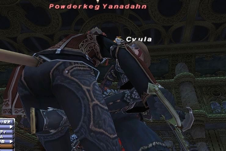 完全にCyulaの手が・・・ミスラさんの足の間にはまってる・・・