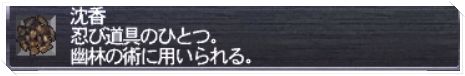 幽林の術(ゆうりんのじゅつ):忍道具(沈香)