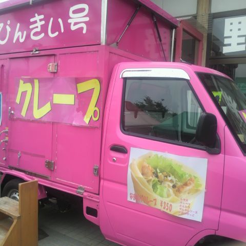 道の駅ことおかのクレープ屋「ぴんきぃ号」の「なまはげクレープ」「生姜焼きクレープ」など