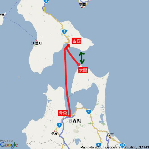 太平洋側から出発して、津軽海峡を通り、陸奥湾、そして日本海