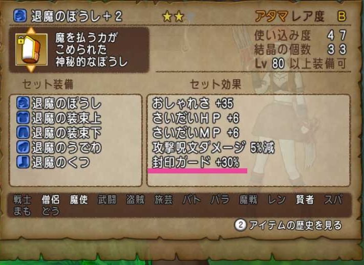 今は頭装備に封印ガード100%つけてるんだけど、