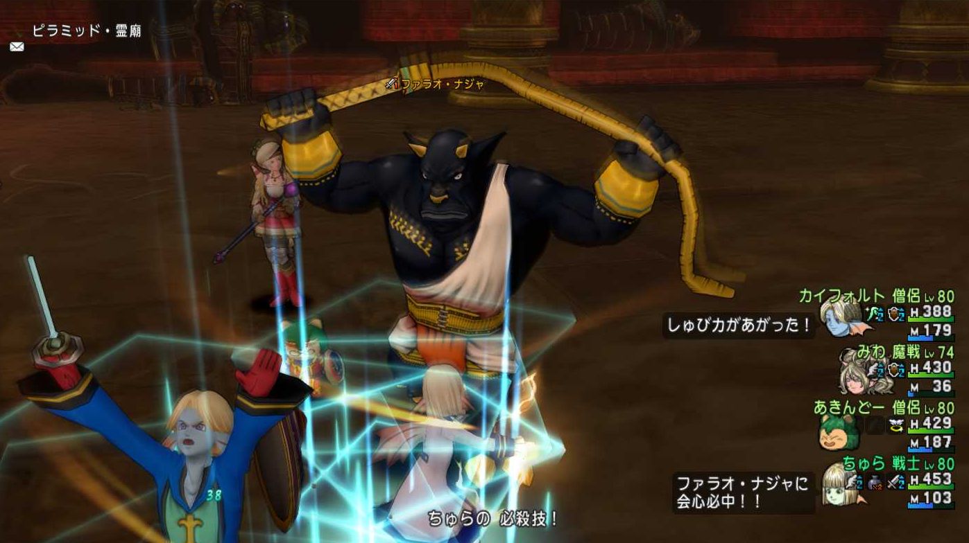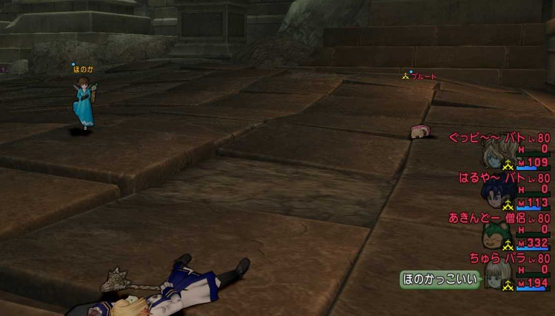 ◯ ナジャとの戦闘前の敵を1匹残して、サポ僧侶たちの準備を待つ。
