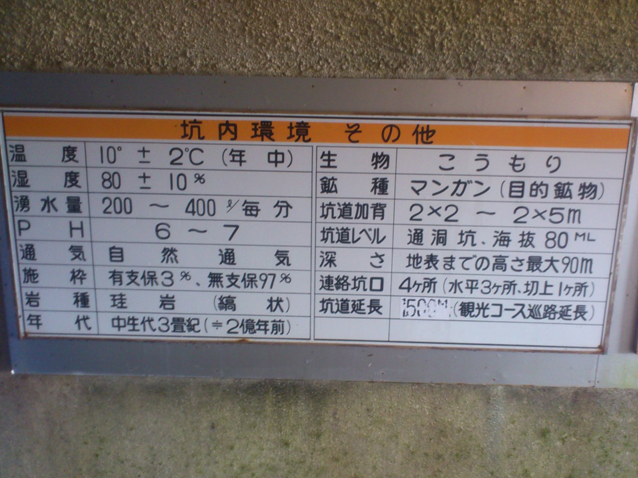 坑道の見学コースはおよそ1500m。