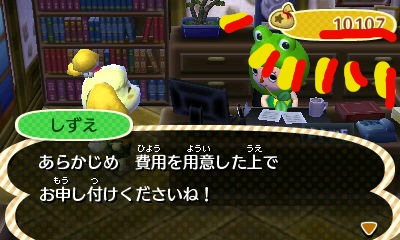 全部家具をかばんに閉まって、名前確認して、違うのを配置。