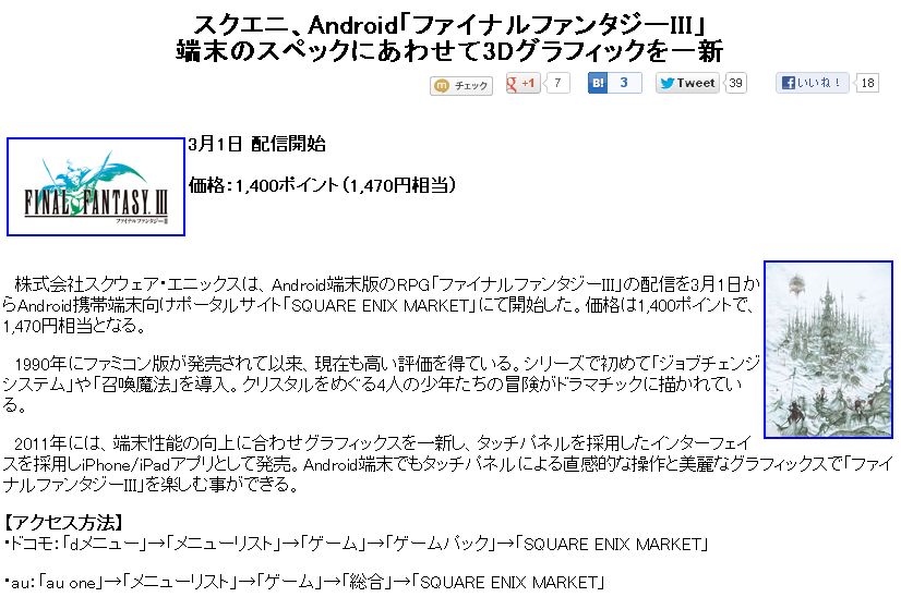 『ファイナルファンタジーⅢ』がAndroidに登場!!