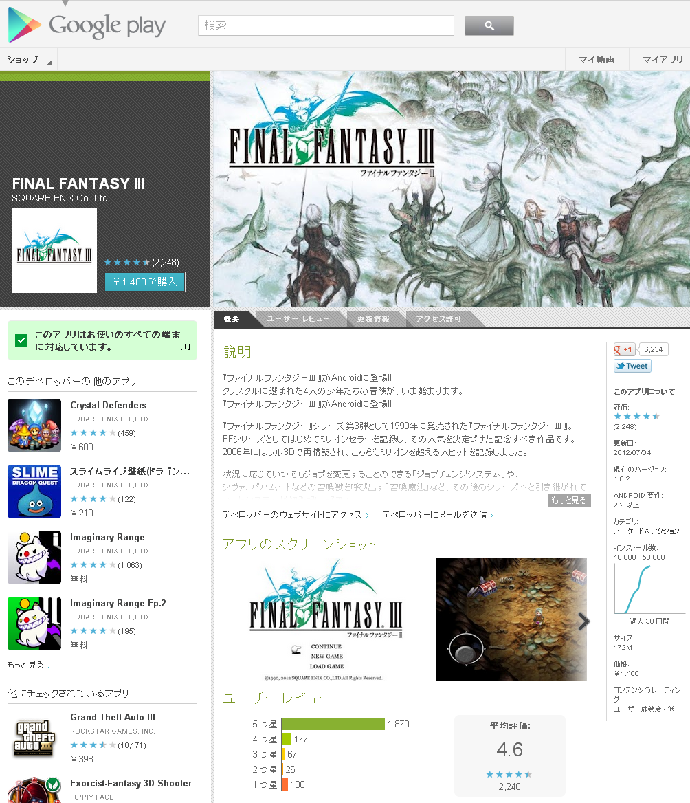 AndroidにFFIIIが出てた。