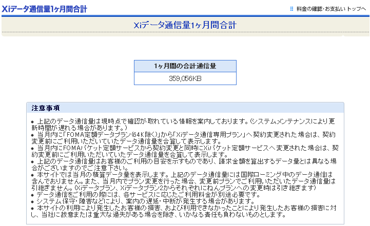 一ヶ月間の合計通信料 359,056KB