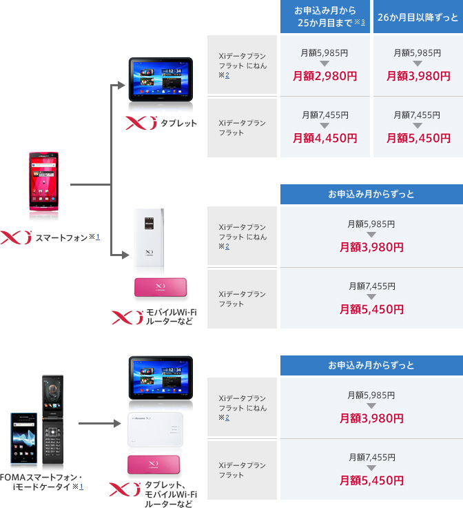 Xiタブレット・XiモバイルWi-Fiルーターなどの毎月の定額料がおトクに!