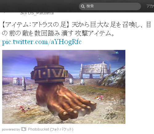 天から巨大な足を召喚し、目の前の敵を数回踏み潰す攻撃アイテム。