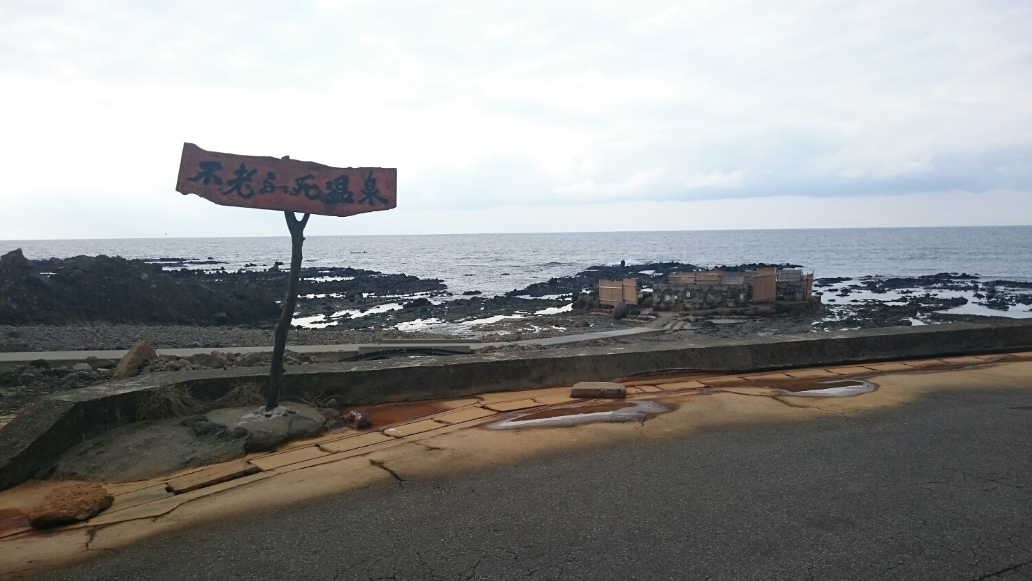 不老不死温泉の露天風呂は、海のところに温泉。海の中に温泉。って感じのところなの。