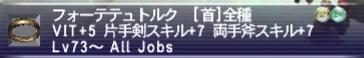 | スカディクウィリ | 防40 DEX+8 AGI+8 CHR+8 命中+10 攻+5 飛命+10 飛攻+5 回避-10 コンビネーション:クリティカルヒット+ Lv75~ シ獣狩コ |