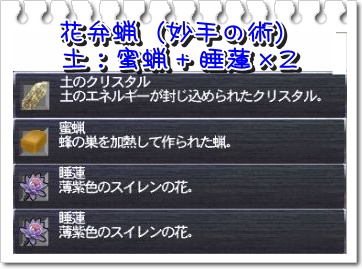 花弁蝋!では、合成してみましょう。(錬金術スキル名取程度)