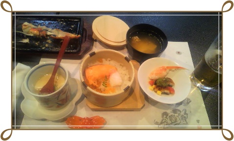 最後らへんにカニの酢の物と腹子飯(いくらと鮭のご飯)と茶碗蒸し