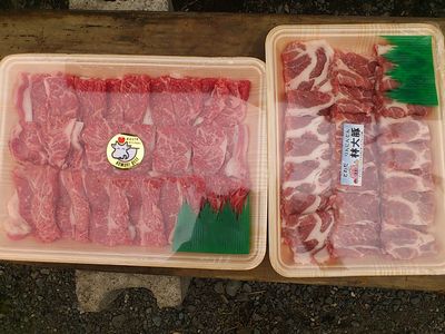 右側のお肉は豚肉なんだけどね。