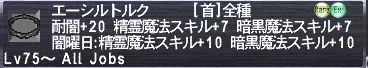 ●●エー シルトルク(首 耐闇+20 精霊魔法スキル+7 暗黒魔法スキル+7 闇曜日:精霊魔法スキル+10 暗黒魔法スキル+10 Lv75~ All Jobs) or