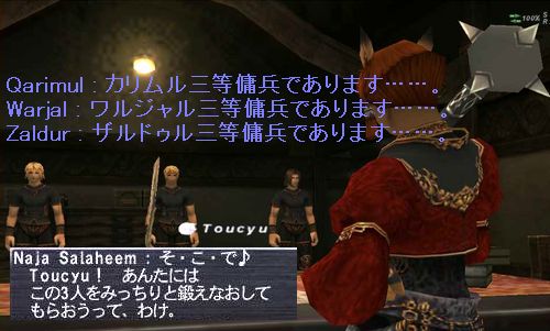 <たいしたもんだよ。Toucyu!こいつらをここまで屈強な傭兵に育てあげるとはネェ