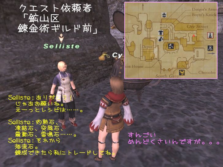 | 次にJ-7(I-7から次のマップへ)にあるRefiner Leverを調べると●ミスリルの砂粒を入手。 |