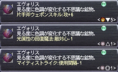 エヴォリスの定着に成功すると、装備品に新たな性能が付与され、