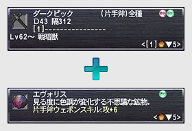 例えば、以下のような能力を有したエヴォリスで、ベースとなる装備品の性能や装備可能なジョブの能力を踏まえて、装備品を強化することができるのです。