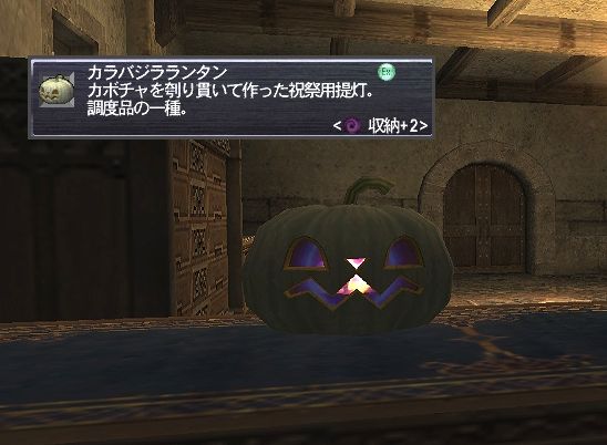 | 調度品 | カラバジラランタン ● | カボチャを刳り貫いて作った祝祭用提灯。 調度品の一種。 <属性:闇 収納数:2 サイズ:1x1> |