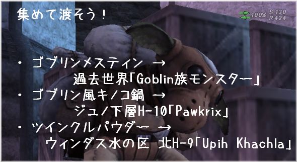 バストゥーク商業区〔S〕H-6にいるGentle Tigerに話すとイベントがありクエスト開始。